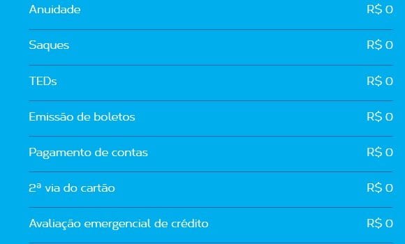 Todos os serviços, inclusive os TEDs, não são pagos, assim você pode fazer saques, transferências, emitir boletos para pagamento por terceiros, pagar suas próprias contas e boletos sem pagar nada por isso.